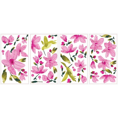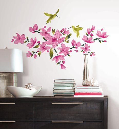 -. Title : York Wallcoverings RMK2496SCS RoomMates Pink Flowering Vine Peel & Stick Wall De,