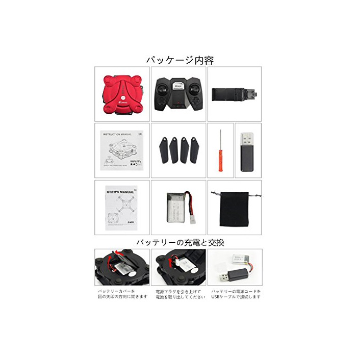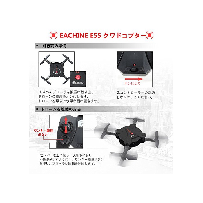 원본상품명: EACHINE E55 ドロン ミニドロン WiFi FPV カメラ付き 折りたたみ式 2.4G 6軸ジャイロ 抗衝突 ヘッドレスモド 3D宙返り RTF ポケットサイズ