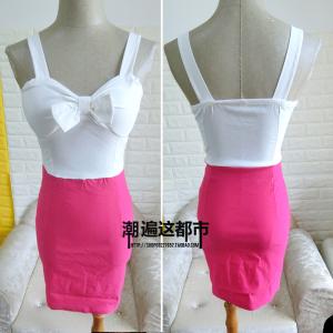 ミニ丈ワンピース タイトワンピース キャミワンピース 胸リボン セクシー ハイウエスト プチプラ カラースカート