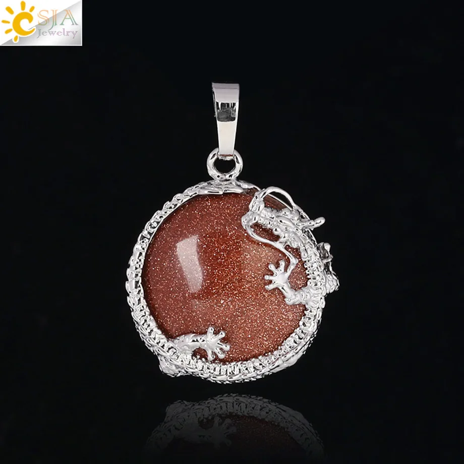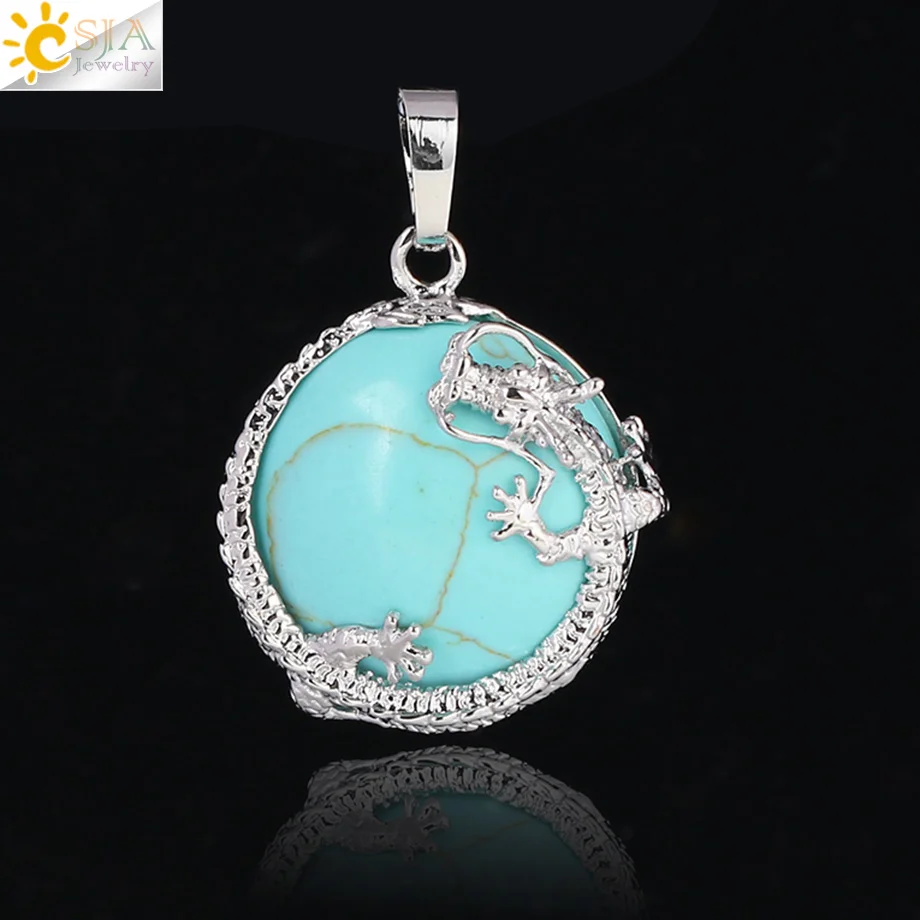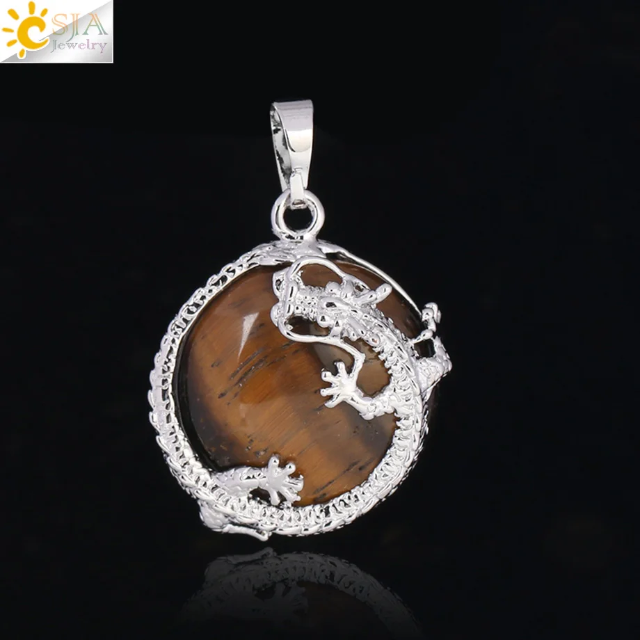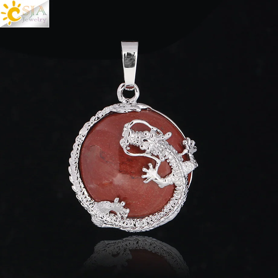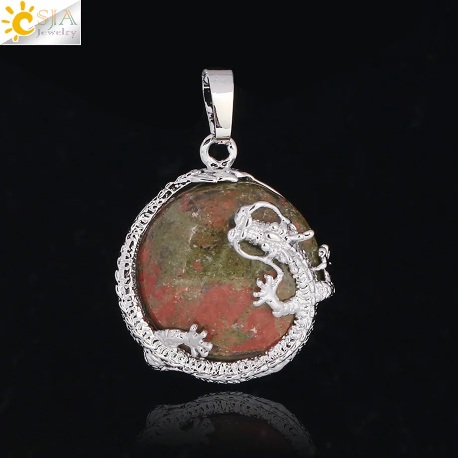 Pendant Feature:Natural Stone +Round Shape Beads + Dragon Fittings + Handmade