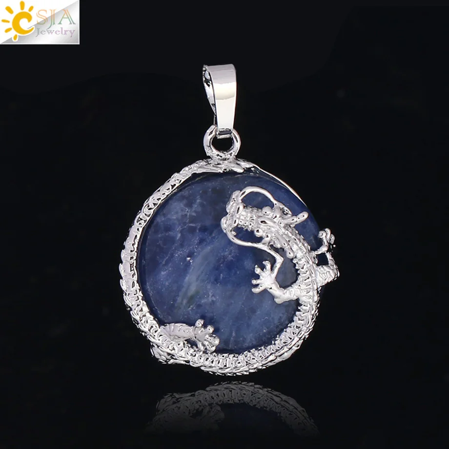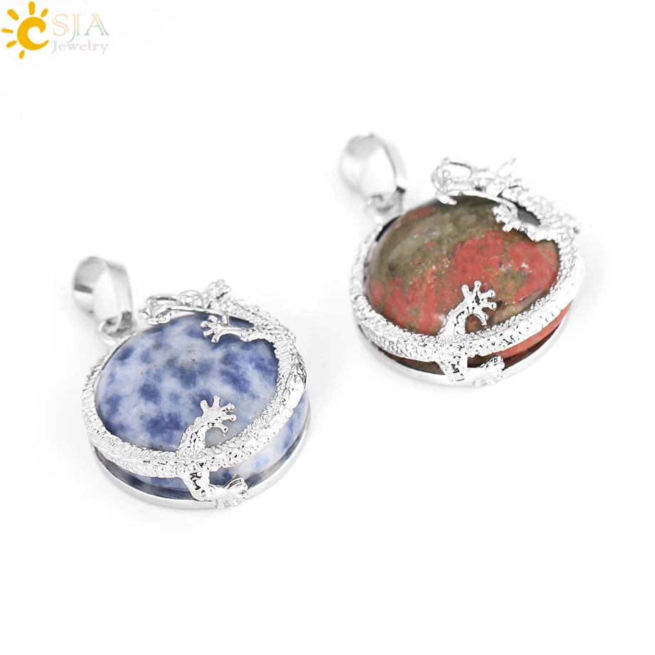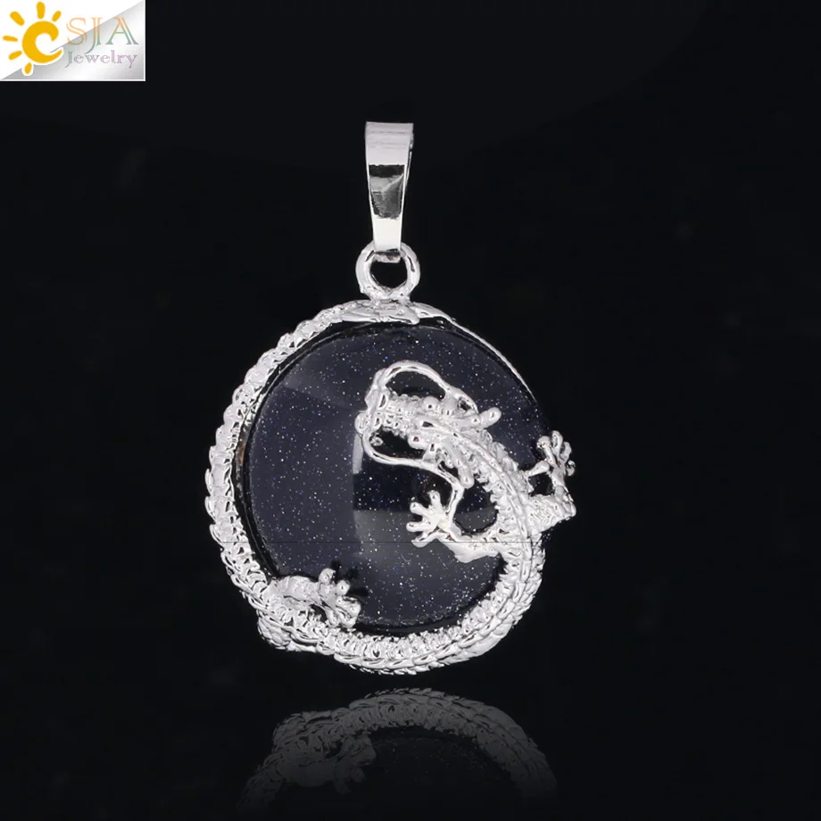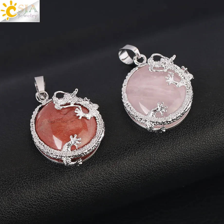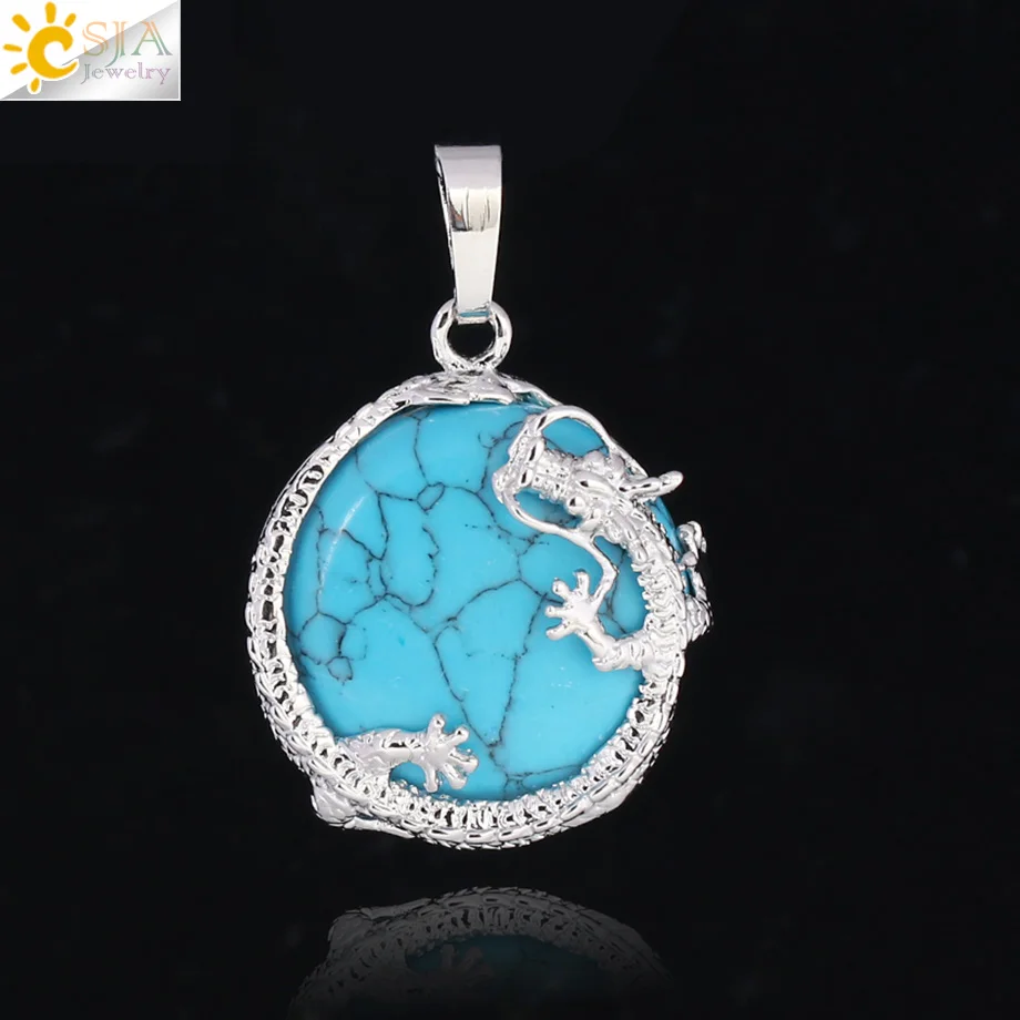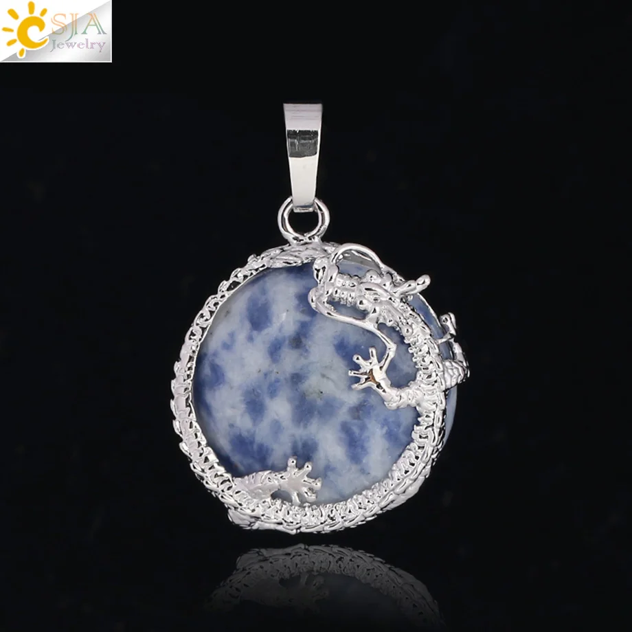 Pendant Feature:Natural Stone +Round Shape Beads + Dragon Fittings + Handmade