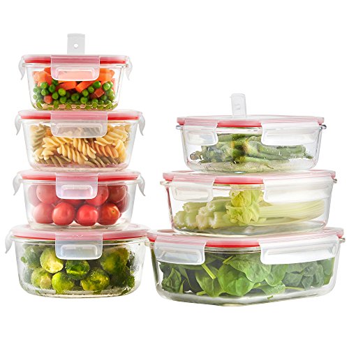 -. Feature : Multipurpose 7 piece glass container set with airtight lids - ideal for storing, preserving, preparing, cooking, warming up & serving / Comprises round 650ml (22oz), round 950ml (32.1oz), square 520ml (17.6oz), square 800ml (27.1oz), rectangle 640ml (21.6oz), rectangle 1050ml (35.5oz) and rectangle 1520ml (51.4oz) containers / Made from high quality borosilicate glass with clip on BPA-free lids with air vents for microwaving / Fridge, freezer, microwave and oven safe (without lid) up to 1112°F