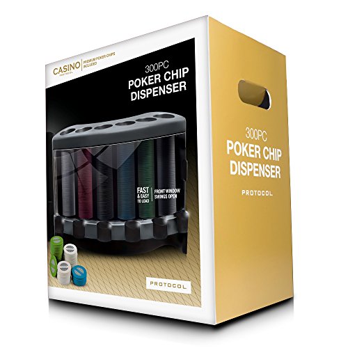 What happens in Vegas doesn't have to stay in Vegas. Protocol's 300pc Poker Chip Dispenser makes the best of Sin City available any place, any time. Superior to the standard, wheel-style dispensers, this sleek set dispenses 5 chips at a time with just the pull of a lever and stores all the poker accoutrements when not in use. Included are 300 high quality poker chips. The front door opens making it a cinch to load or just drop the chips through the slots in the top. A handle is built into the back proving it just right for Saturday night with the buds or after hours tournaments. Protocol's 300pc Poker Chip Dispenser is a sure bet!