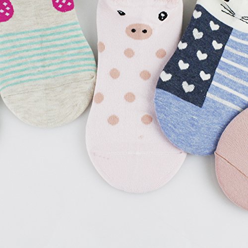 -. Feature : SIZE: One size fits all socks. Easy to slip on as well as off. Remmond women shoes size: US 5-10. / MATERIAL: 78% Cotton, 17% Polyamide, 5% Elastance, soft, comfortable, stretchy and breathable. Enough elastic in the ankle area, so they don't slip down inside sneakers or boots. / MULTIPLE DESIGN: The colors are vibrant, very cute patterns with lots of variety! Grey with panda; beige with fox; watermelon pink with sleeping sheep; pink wit pig; blue with little mouse; / FUNCTIONAL: Not too thick, not too thin, not too tall, and not too short! They're just right, and cute. Fit well, lightweight, and very durable, all day comfort, perfect for home wear. These are not ordinary socks, but fun to mix and match. / GIFT CHOICE: The animals looks super cute and don't warp when you put the socks on your feet. Great stocking stuffers for ladies and girls! Gift for Valentine's Day, Mother's Day, Christmas and Birtday Gift.