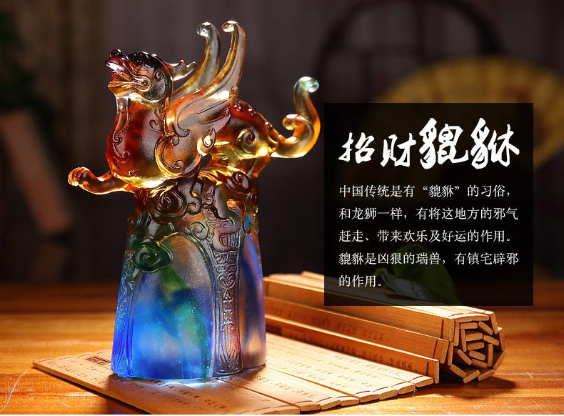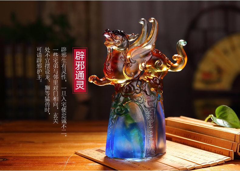 相传喜欢金银,且“只进不出”,常叼回金银财宝,趋财旺财,于正财或偏财都会有利。故多置于玄关,但必须头向门外,以利四方纳财。尤其是门前有“散财”梯时(向下的楼梯),更应配合凹镜护财。辟邪生有灵性,一旦入宅便忠诚不二,一些宅弟与邻里对门相向,玄关处不宜摆设龙、狮等猛兽时,可请辟邪护主。传说中辟邪曾经帮助黄帝打败过蚩尤,具有驱邪除妖,收瘟摄毒,伏群魔的威力。因此民俗中也常用于镇宅挡煞,妖邪阴煞,、病灾瘟神等遇辟邪必逃之夭夭!
