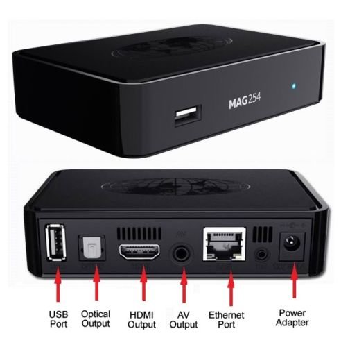 PTV SET-TOP BOX MAG254 - 100% original unit and packaging from Ukraine. MAG 254 is a powerful Set-Top Box with efficient processor STiH207 and increased RAM memory, and it is an optimal solution for IPTV/OTT projects. The Set-Top Box is designed to fulfill business projects of internet providers, OTT operators and content aggregators. The increased productivity of MAG 254 enables to use resource-intensive interactive applications and support 3D-video. STiH207 650Mhz, Linux 2.6.23, Composite AV, HDMI 1.4, USB x 2, S/PDIF, LAN, WiFi ReadyFeature