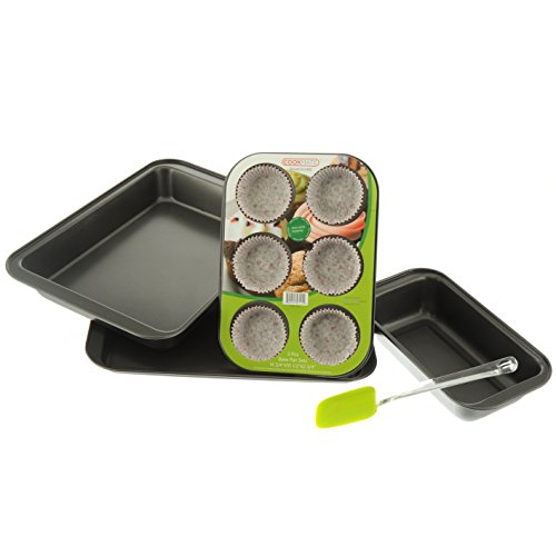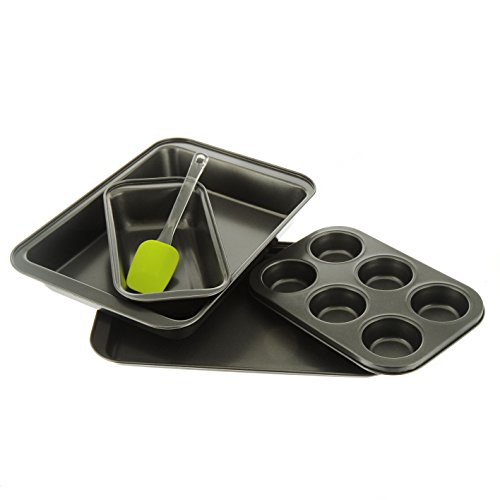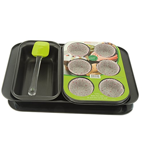 Cookmate 5-Piece Bakeware Gift Set, Charcoal Gray, 4 Pans & Rubber Spatula, by Unity