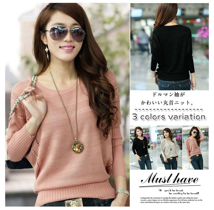 | 素材 | レディース 長袖 丸首 ニット ロング |