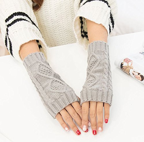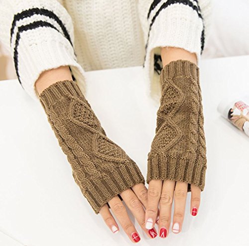 (Limado)/Accessories/Cold Weather Accessories/DIRECT FROM USA/Women Diamond Half Finger Gloves Cable Knit Arm Warmer Fingerless Thumb Hole Glove
