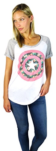 Marvel Womens Captain America Raglan Rolled Sleeve Tee