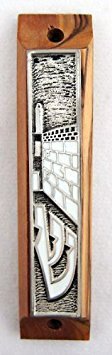 Jerusalem Olive Wood Mezuzah with Scroll by YourHolyLandStore