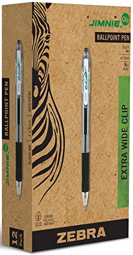 Zebra Eco Jimnie-Clip Retractable Ballpoint Pen, 1.0mm, Black, One Dozen (22510)
