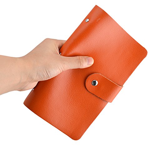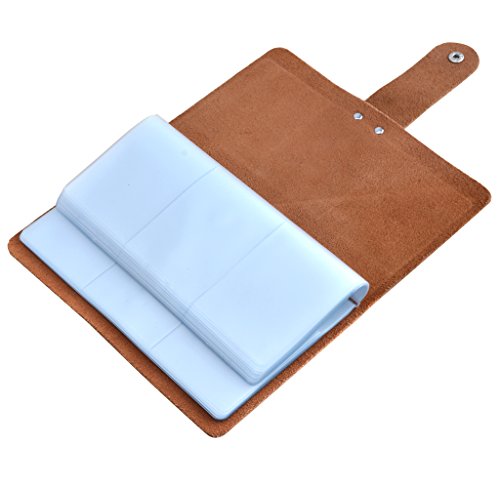 【Adjustable Snap Button Closure】- Our business card book has flexible design, adjustable snap button closure is designed for your different degree of tightness. You also can put a note in the business card book, and infibulate a pen on the buckle.