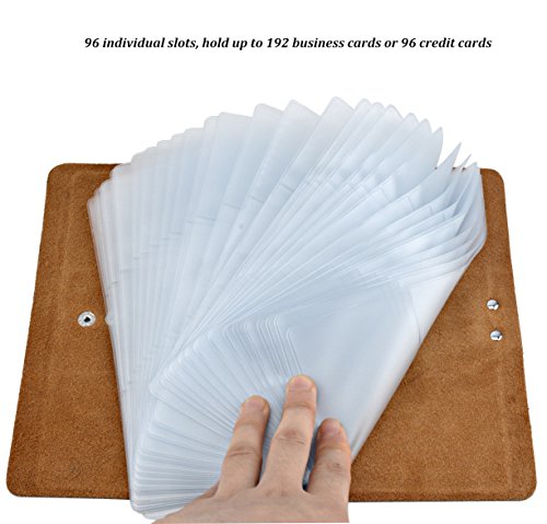 【Great Business Card Organizer】- A great way to store and organize your numerous credit cards, personal/business cards, make cards easy to read. 96 individual slots, each slot can hold 2 PCS name cards or by double sides, 32 clear card-sleeve pages hold up to 192 business cards or 96 credit cards. Not only holds credit cards but membership cards, shopper cards, gift cards, business cards, reward cards, ID cards etc.