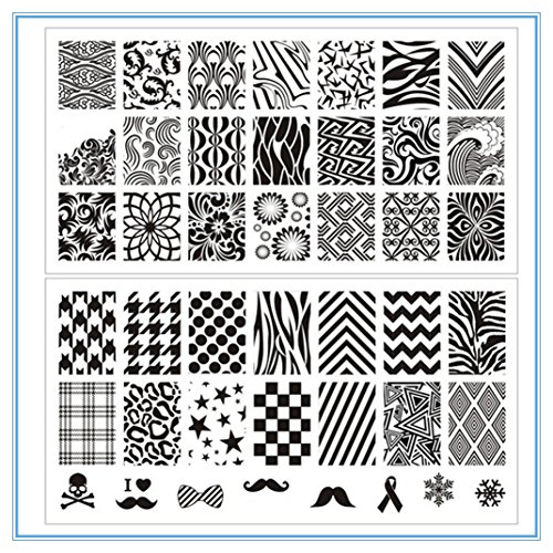 Specification: 100% new retail Size: 12.5 x 6.5cm Package Contents : 8pcs Nail Art Stamp Template Plates BORN PRETTY L001-L008 12.5 x 6.5cm Instructions: The plate is shielded by a thin transparent protective film, please remove the film before use, so that the nail polish can be transferred by the stamper. Feature : 1. Apply base coat or regular polish on the nail. 2. Apply the nail polish to desired image within a plate. (Recommended: Use the Solid Color Nail Polish, so that the texture will be thicker than other nail polish) 3. Make a scraper leaned over 45 degrees and scrape excessive polish off quickly and strongly from inside to outside. 4. Immediately press the stamper with a gentle rolling motion to pick up the design. The image is transferred on the stamp. 5. Stamp the image on your nail with a gentle rolling motion. The image is transferred on your nail. 6. Repeat the above steps for all of your nails. 7. After stamping nail art, apply top coat for lasting wear.Feature