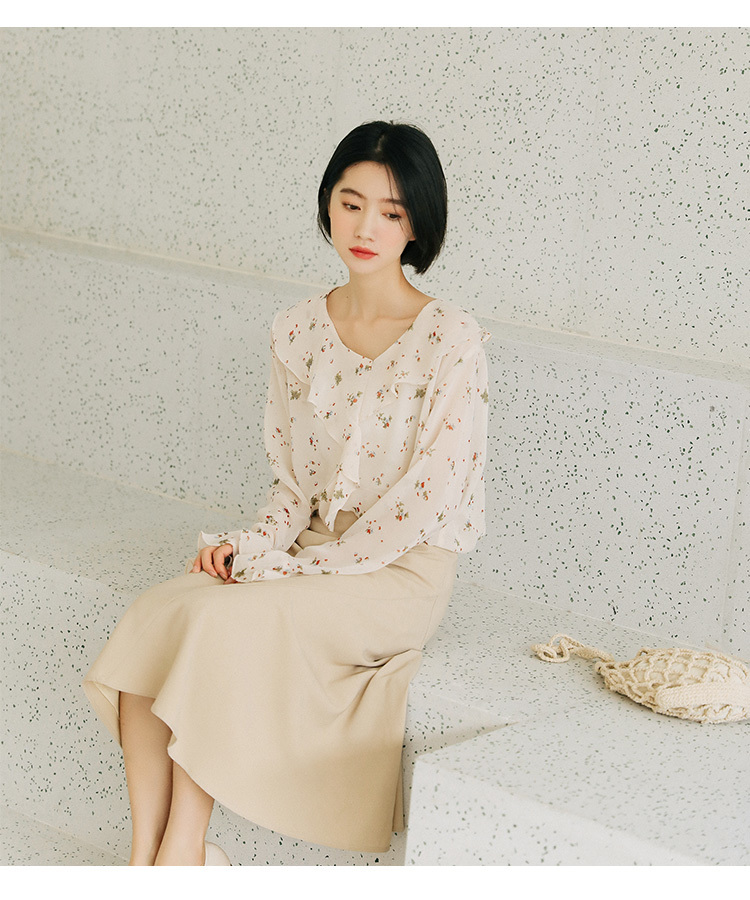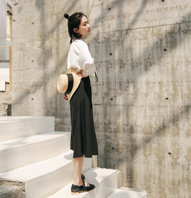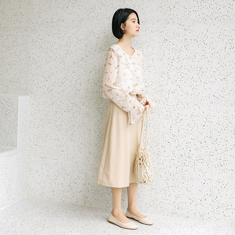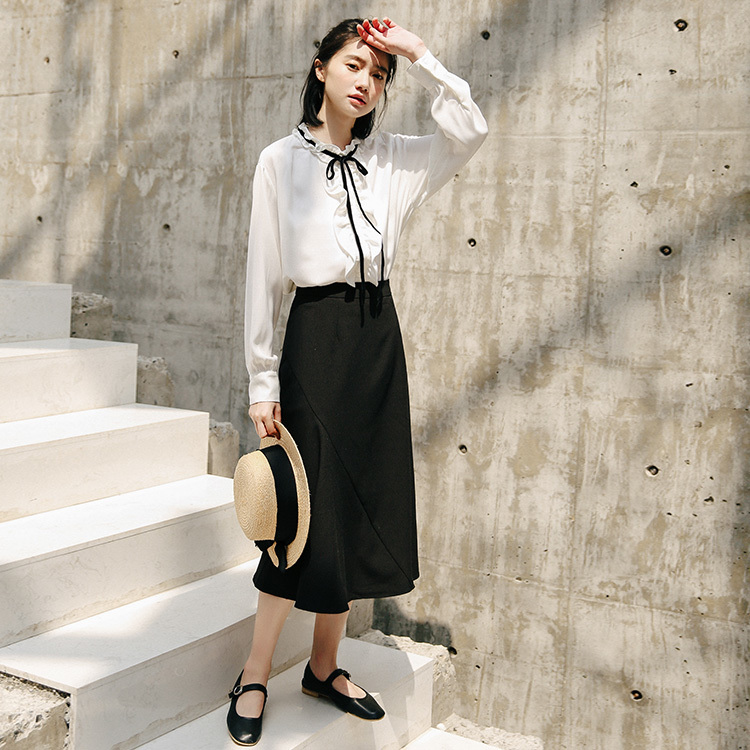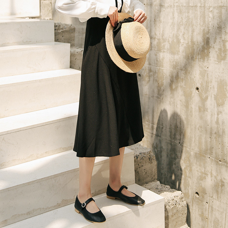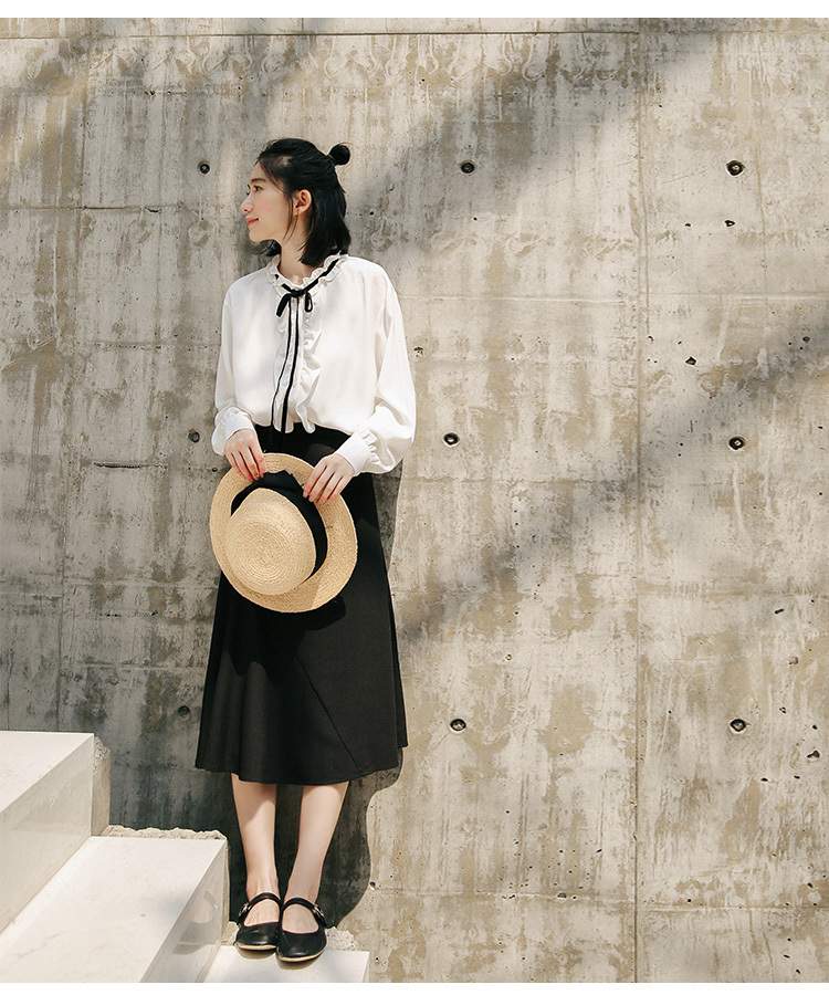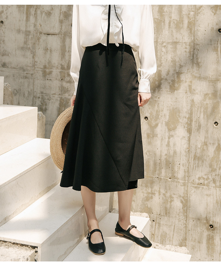 裾の切り替えラインがさり気ないアクセントとなり、程よく広がるエアリーさがポイント。