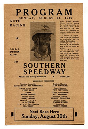 Southern Speedway Auto Racing Program 1936-Rajo Jack AA driver-Rare!