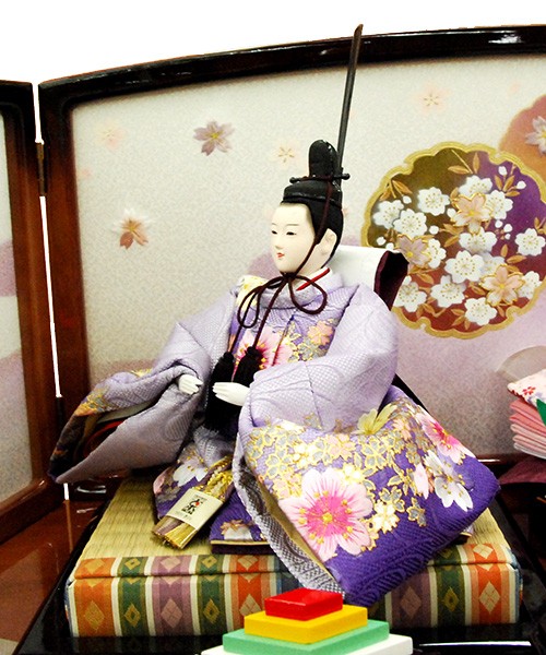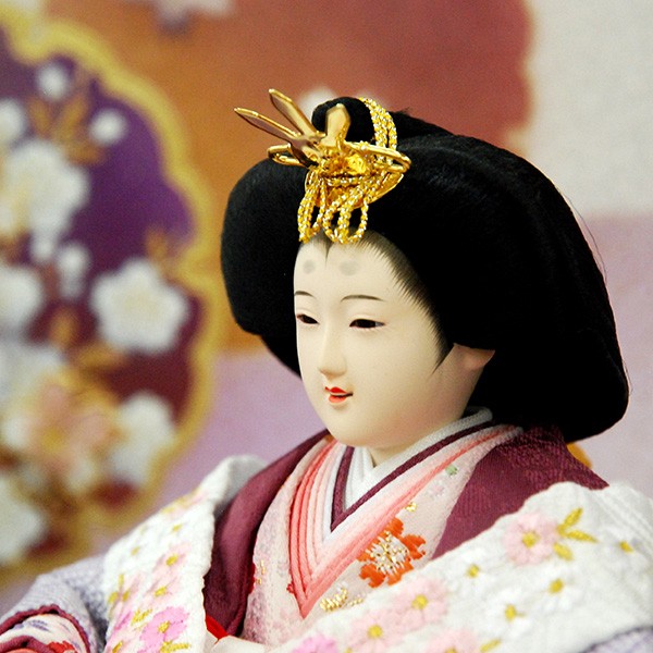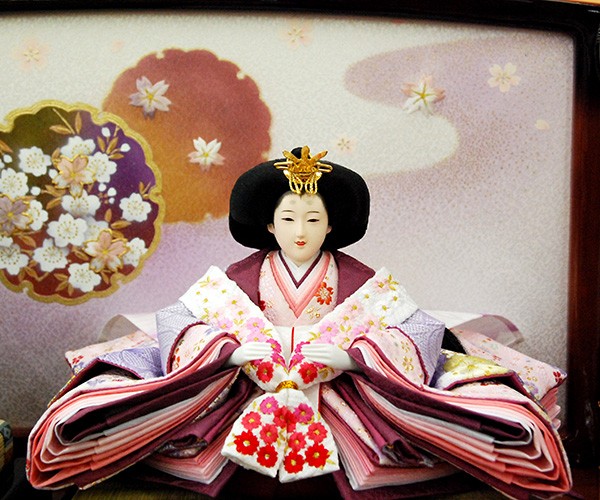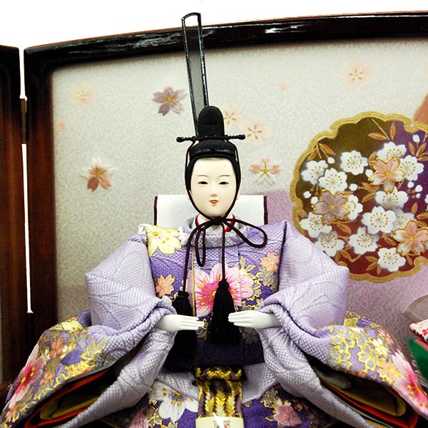 ・台座・屏風等には落ち着いた色目の雛人形セット。