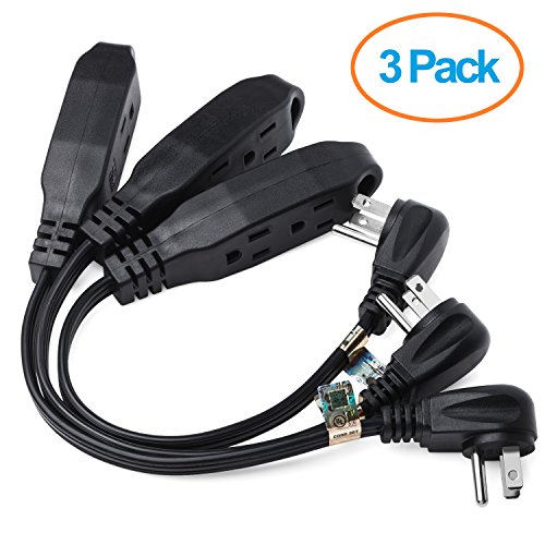 ClearMax 3 Pack of 1 Foot 3 Outlet Extension Cord 16AWG Indoor / Outdoor Use - Black - UL Listed