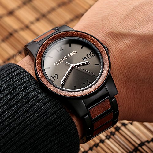 Original Grain's timepiece is high quality and can withstand everyday activity and will retain color better than our competitors watches. . It is sourced from all-natural Sapele wood, which is highly resilient against decay. Rest assured that the wooden bezel and inlays can maintain their refined wavy grained pattern even if splashed by water. The face is protected by scratch resistant crystal glass. Wear it every day without any worry.