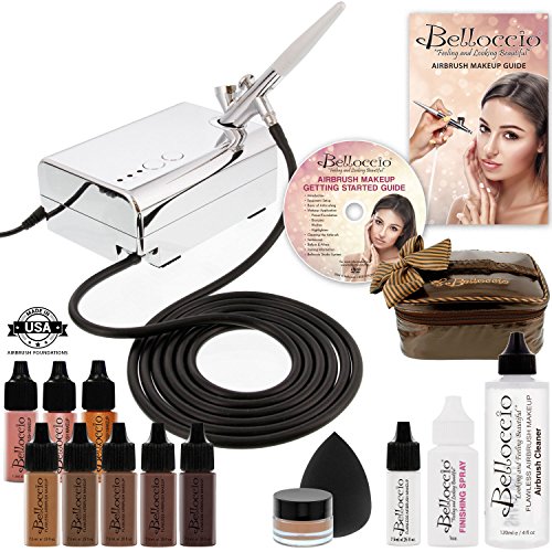 Belloccio's Complete Professional Airbrush Makeup System with DARK Foundation Set Includes: