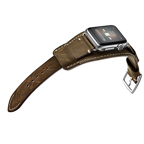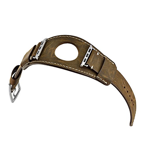 LoveBlue For Series 2 Series 1 Watch Band, Buckle Cuff Apple Watch Leather Band, Genuine Leather Band Bracelet Wrist Watch Band with Adapter for Apple Iwatch (42mm-Crazy Horse Leather Coffe)