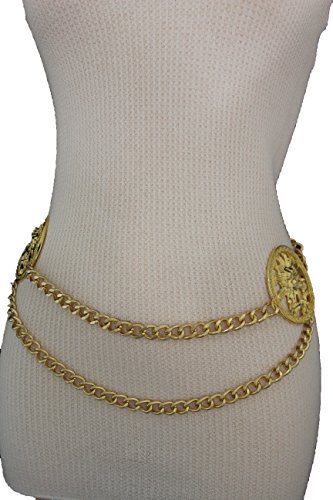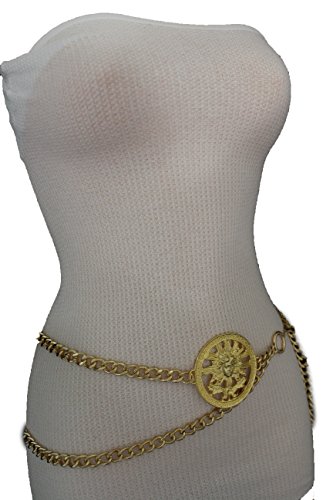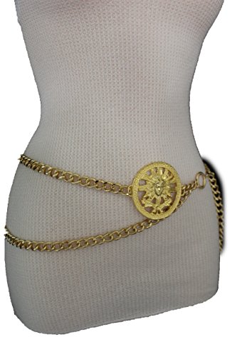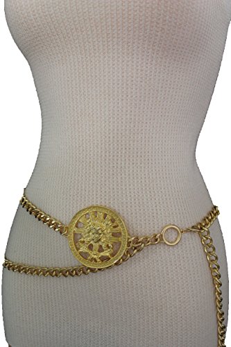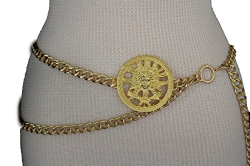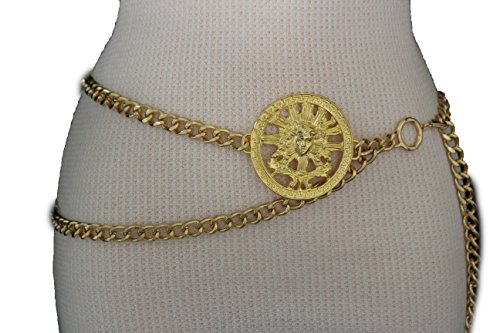 (Trendy Fashion Jewelry)/Accessories/Belts Buckles/DIRECT FROM USA/TFJ Women Fashion Belt Metal Chains Hip Wais t Sun Goddess Medusa Head Charm Gold