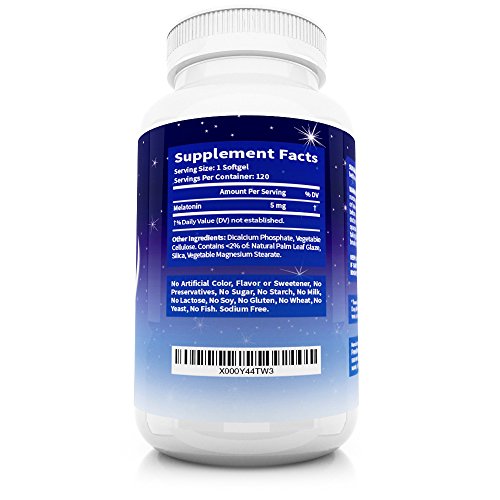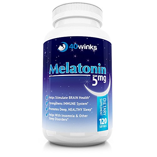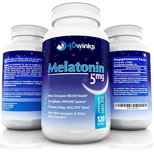 -. Binding : Health and Beauty -. Brand : 40 Winks -. EAN : 0035239083357 -. Feature : HELPS STIMULATE BRAIN HEALTH - Melatonin 5mg and other doses have been shown by leading researchers to help with overall brain health. Melatonin - a natural hormone produced in the Pineal Gland - is needed for proper brain function. Ageing and environmental factors can cause the degeneration of optimal brain function and activity. This 40winks natural melatonin sleep aid helps with regeneration of melatonin levels and improves brain health. / STRENGTHENS IMMUNE SYSTEM - 40winks natural melatonin time release soft gel capsules help regulate your sleep patterns and promote a healthy immune system. Melatonin release in the body increases in the hours of darkness. The release of adequate amounts of melatonin is vitally important for optimum brain activity and the body's immune system. / PROMOTES DEEP, HEALTHY SLEEP - One of the best melatonin sleep aids on the market, 40winks Melatonin promotes a natural healthy sleep pattern. Allowing the pineal gland in your brain to produce sufficient amounts of the hormone melatonin - vital for an overall healthy wellbeing. / HELPS WITH INSOMNIA & OTHER SLEEP DISORDERS - Do you suffer from sleep disorders like insomnia? Or perhaps you are a night worker or very light sleeper? Such poor sleeping habits can lead to depression, anxiety and social disorders. Reclaim your life and your happiness with 40winks Melatonin 5mg. / TODAY'S MODERN LIFESTYLE ALMOST GLORIFIES THE ABILITY TO FUNCTION ON LITTLE AMOUNTS OF SLEEP! - Disrupted or unusual sleeping patterns can cause havoc to your lifestyle - not to mention your longterm wellness! Deep restful sleep is of paramount importance to your health - your number one priority!! 100% MONEY BACK PROMISE!! -. IsAdultProduct : 0 -. Label : 40winks -. Manufacturer : 40winks -. ProductGroup : Health and Beauty -. ProductTypeName : HEALTH_PERSONAL_CARE -. Publisher : 40winks -. Studio : 40winks -. Title : 40Winks Melatonin 5mg, 120 Soft Gel Capsules, Natural Melatonin Sleep Aid, Made in USA, Melatonin Time Release Natural Sleep Supplement, 100% Money Back Promise! -. UPC : 035239083357