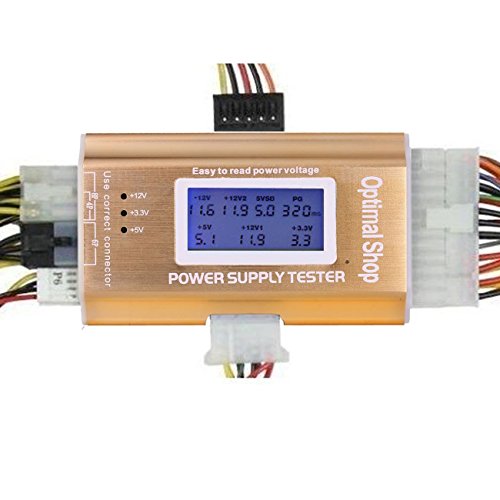 - This power supply tester is the ultimate tool for all computer repair people. It comes with an 8-in-1 ATX power supply tester that outputs the voltage levels of your connectors to a 1.8 inch screen that is built into the device!You can accurately detect problems with power supplies and prevent damage to your motherboard. Will test 20, 24pin, 4-pin power, SATA, Floppy Power, PCI-e, 4-pin, ATX12V, and 8-pin connectors.