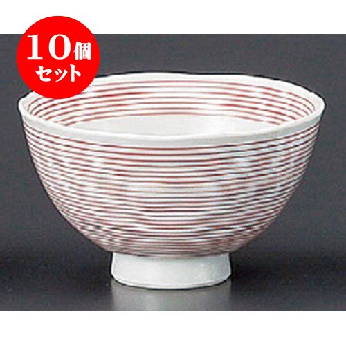 원본상품명: 10個セット 飯碗(磁器) 赤千筋飯碗小 [102 x 59mm] 和食器 料亭 旅館 ?食店 業務用