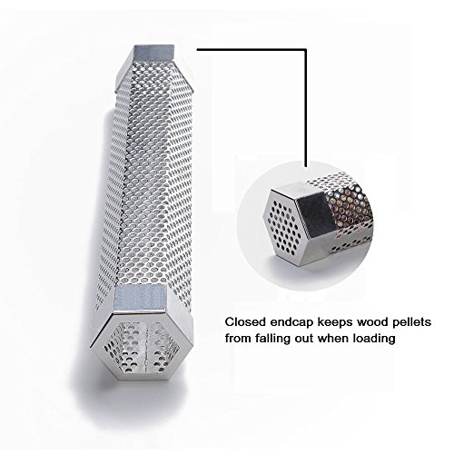 - SUPERIORLY DESIGNED FOR HASSLE FREE USE AND CLEANUP! – Unlike square or round smokers, this hexagonal-shaped smoker tube is specially designed to safely stay in place on grill grates, yet can roll over easily to disperse the wood chips and produce quality smoke. Made from 100% high quality 304 stainless steel, this 12” durable tube won’t bend, break or rust even after tons of use! To clean, simply run a bottle brush down the inside and wipe the outside. It doesn’t get any easier!