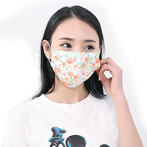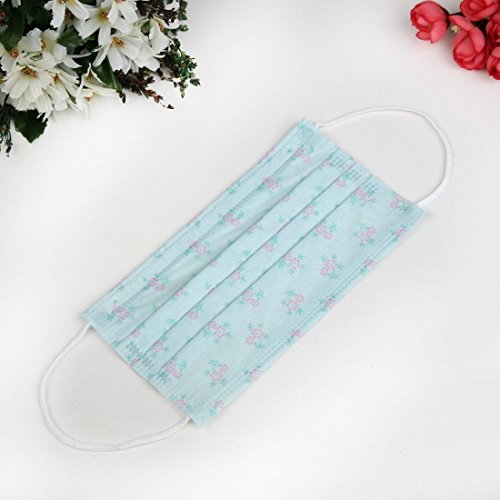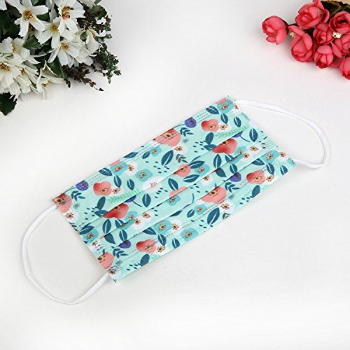 Flyusa 30 Pcs Cute Face Masks,3 Layer Flower Print Non woven Fabric Disposable Medical Surgical Dust Filter Ear Loop Mouth Cover
