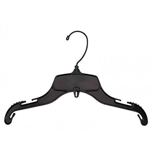NAHANCO 22200BH Plastic Shirt Hangers, Molded Non-Slip Shoulders with Black Hook, 12", Black
