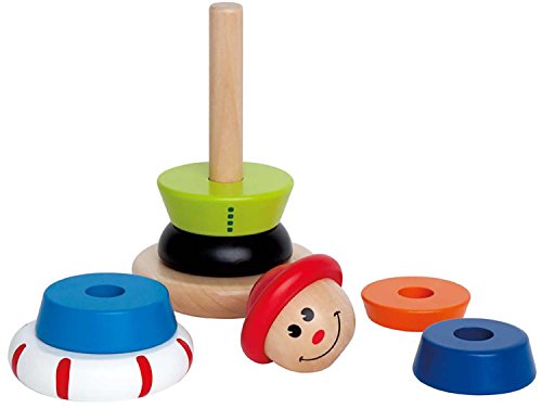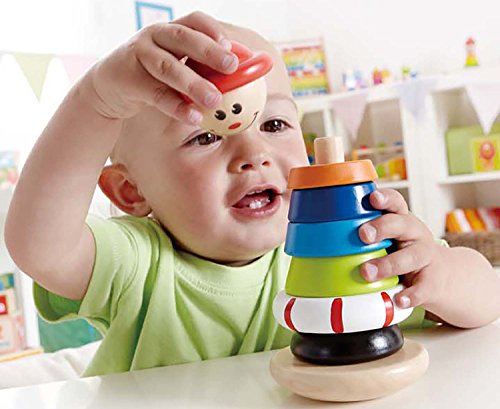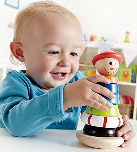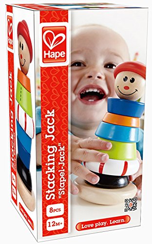 Get Jack ready to climb that hill! Kids will love putting together and playing with the innovatively designed Stacking Jack Ring Toy from Hape. Jack is dressed in bright colors and whimsical patterns, adding to his friendly appearance and smiling face. Each wooden ring is perfectly sized for small hands to hold, and slides easily onto the swivel base. Encourages coordination, color and size recognition, and motor skill development. Made from wood sourced from environmentally sustainable forests. Durable child-safe paint finish and solid wood construction are hallmarks of Hape toys. Hape's toys stimulate children through every stage of development and help nurture and develop their natural abilities. All Hape products sold in North America meet or exceed all applicable safety standards.Feature