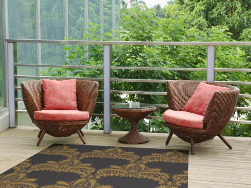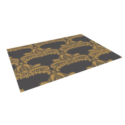 Kess InHouse Nandita Singh "Decorative Motif Gold" Copper Floral Indoor/Outdoor Floor Mat, 4-Feet by 5-Feet