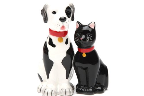 Dog and Cat Good Friends Magnetic Ceremic Salt and Pepper Shakers