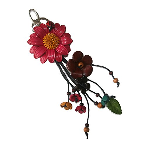 Bella Pazzo Raspberry Pink Handmade Sunflower Flower Leather Keychain Key Ring Clasp Bag Charm Handbag Purse charm Car Key Pendant