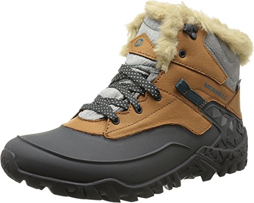 FEATURES of the Merrell Women's Fluorecein Shell 6 Boot PU coated Waterproof leather and Fabric upper Traditional lace closure Bellows tongue keeps debris out 200g lightweight, low bulk insulation keeps you warm Faux fur collar EVA removable footbed Molded nylon arch shank Merrell air cushion in the heel absorbs shock and adds stability Waterproof seam sealed constructionFeature