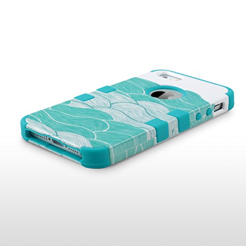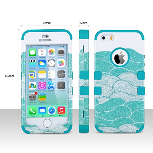iPhone 5S Case, iPhone 5 Case, ULAK 3 in 1 Shield Case Fashion Pattern Hybrid High Soft Silicone + Hard PC Case Cover for Apple iPhone 5S 5 (Ocean-Blue)
