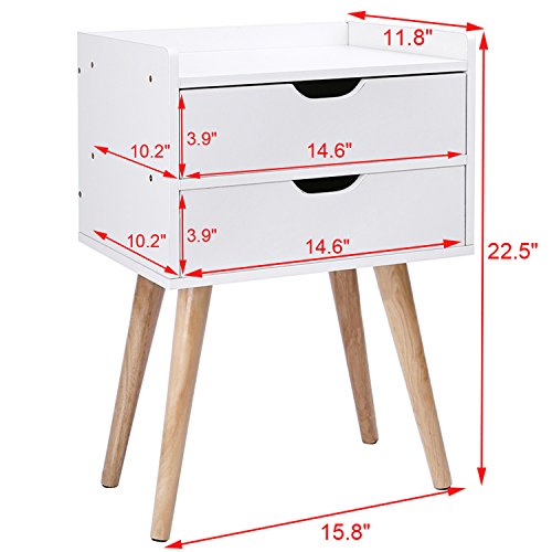 Specification: Color: White Material: composite wood and solid wood Overall dimension : 15.8"× 11.8" ×22.5" (L×W×H) Drawers dimension: 14.6"× 10.2" ×3.9" (L×W×H) Net weight: approx 18.5 Lbs Package includes: 1×Nightstand and 1×Instruction 0