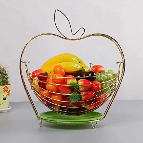 Linwell Fruit Bowl Fruit Basket Metal With Anti Drip Plate One Layer (Gold)