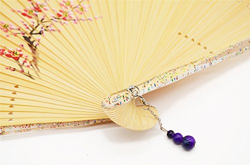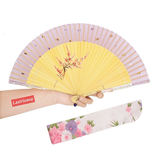 LeeHome Chinese / Japanese Style Female Hand Folding Fan -- With a Fabric Sleeve -- "crystal Silk "Pattern (Lavender)