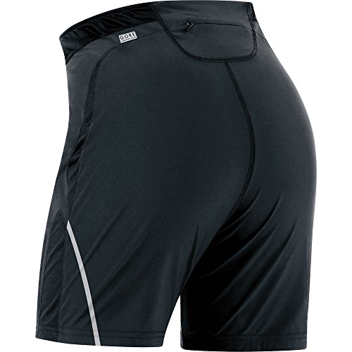 -. Binding : Sports Apparel -. Brand : Gore Running Wear -. Department : womens -. Feature : Nothing is what it seems: these ladies' shorts have full running tights on the inside for the perfect fit with little chafing and a casual look. / Slim fit / Stretch material for more freedom of movement / Zip pocket on back / Fixed inner tights / Shifted seams for less chafing -. Label : Gore Bike Wear -. Manufacturer : Gore Bike Wear -. PackageQuantity : 1 -. ProductGroup : Sports -. ProductTypeName : OUTDOOR_RECREATION_PRODUCT -. Publisher : Gore Bike Wear -. Studio : Gore Bike Wear -. Title : Gore Running Wear Women's Essential 2-in-1 Lady Shorts