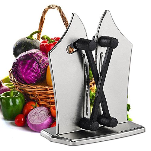 ★EASY TO USE: Features two independent spring-action arms made of tungsten carbide that contour to your knife's edge better than a knife sharpening stone; Put the knife forth and back ,then works !