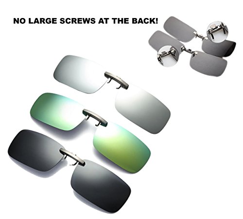 Here are 4 Reasons you're Going to LOVE our PREMIUM QUALITY clip-on sunglasses: • No large screws at the back of the glasses (unlike similar products sold online)