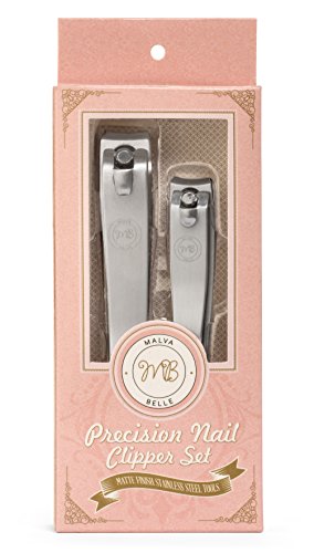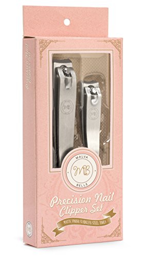 -. Binding : Health and Beauty -. Brand : Malva Belle -. EAN : 0638936422902 -. Feature : Extra sharp high quality clippers - clip efficiently and precisely through thick nails with minimum effort with the easy press lever handle / Ergonomic, sturdy and smooth construction / Versatile sizes - the small pocket size nail clipper is 2 inches long and is perfect for trimming small fingernails / Ideal women's gift - these nail clipper sets have a slim design and come in a cute light pink nicely designed packaging making them great birthday or Christmas day gifts for her -. IsAdultProduct : 0 -. Label : Malva Belle -. Manufacturer : Malva Belle -. Model : 2 -. MPN : 2 -. PackageQuantity : 2 -. PartNumber : 2 -. ProductGroup : Beauty -. ProductTypeName : BEAUTY -. Publisher : Malva Belle -. Studio : Malva Belle -. Title : Malva Belle Precision Nail Clipper Set Toenail & Fingernail Clippers Premium Stainless Steel Nail Cutter Kit Effortless Clipping of Thick Nails Keychain Hole Gift Idea for Women & Girls -. UPC : 638936422902