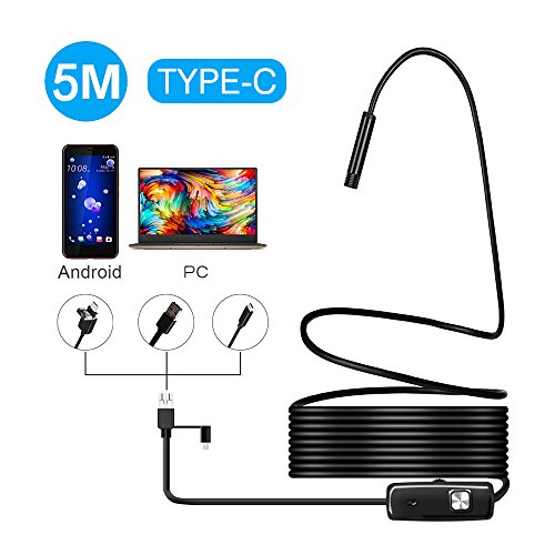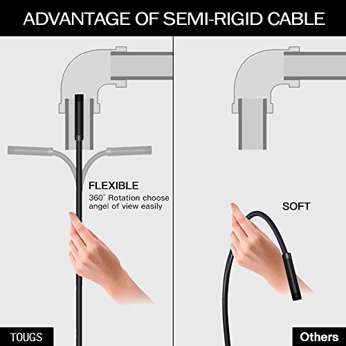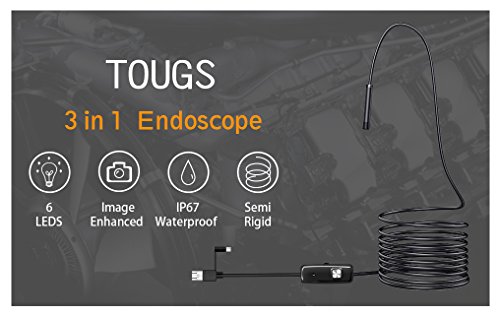 TOUGS USB Endoscope Semi Rigid 3 in 1 Borescope HD 720P Waterproof Inspection Camera with 6 Adjustable Led Light (5M 16.4ft)