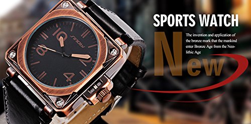 -. Title : SINOBI Motor Military Sport Man Square Leather Watches, Quartz Hombre Alloy Brass Campaign Wrist Watches