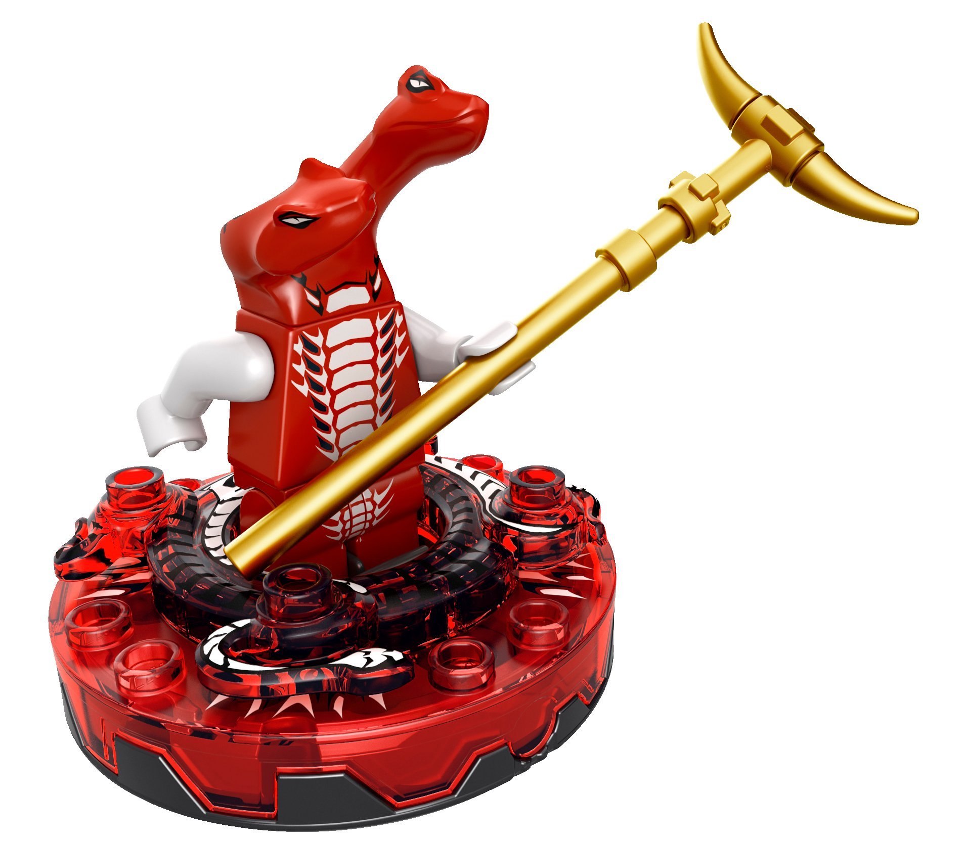 Let's customize the red skeleton spinner with a snake crown of red skeleton! Minifig, Red Skeleton Spinner, Red Skeleton Snake Crown, Normal Defense Block, 1 Gold Weapon, Normal Weapon 2