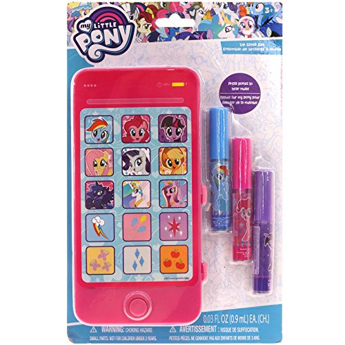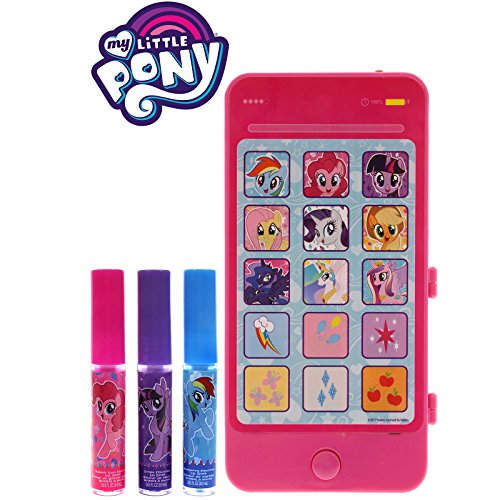 -. Binding : Health and Beauty -. Brand : TownleyGirl -. EAN : 0719565387340 -. Feature : SHIMMER AND SHINE This super cool lip gloss set makes lips sparkle and shine, while hydrating and protecting. It is the perfect shimmery lip gloss. / MY LITTLE PONY CHARACTERS a music playing IPhone, which doubles as a carrier for the lip gloss, and each of the lip gloss are decorated with characters of her favorite Pony. Kids will have fun showing their friends this colorful collection. / PUCKER UP WITH YUMMY FLAVORS Children will have a great time trying out all the amazing flavors, and there is sure to be something for everyone. Flavors included are: Bubble Gum, Blueberry and Grape. / PERFECT PRESENT FOR BIRTHDAYS AND HOLIDAYS Whether it is her birthday, Christmas, or any other day, this set will make a great gift for any girl on your list. / AGES 3 AND UP This kit of lip glosses is recommended for children ages 3 and up. -. IsAdultProduct : 0 -. Label : TownleyGirl -. Manufacturer : TownleyGirl -. MPN : MP0099SA -. PartNumber : MP0099SA -. ProductGroup : Beauty -. ProductTypeName : BEAUTY -. Publisher : TownleyGirl -. ReleaseDate : 2018-04-01 -. Studio : TownleyGirl -. Title : TownleyGirl My Little Pony Sparkly Lip Gloss with IPhone Case with Music and Touch Screen, 4 CT -. UPC : 719565387340
